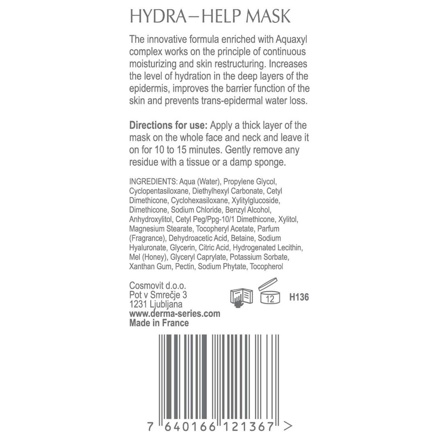 Cream mask has a very light texture and its innovative formula works on the principle of continuous skin hydration and restructuring. It provides total restoration of skin hydro reserves: maintaining osmotic balance in the cells, stimulating hyaluronic acid synthesis, keeping moisture in the epidermis through hygroscopic components, as well as restoring the lipid barrier, creating a protective film to prevent moisture loss.