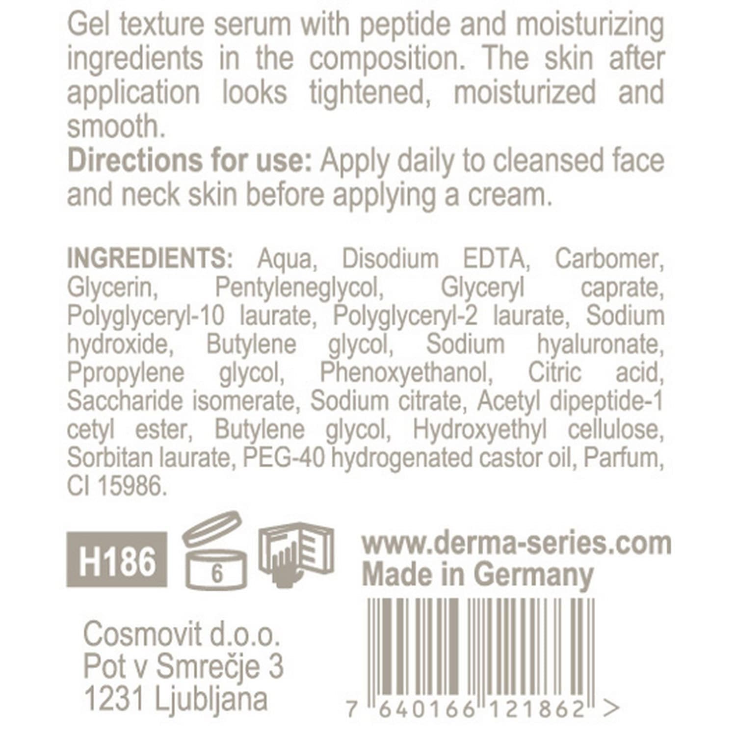 The serum has a light gel texture and is quickly absorbed. It is used in a course of anti-age care, as well as in supportive everyday home care with duration up to two months.