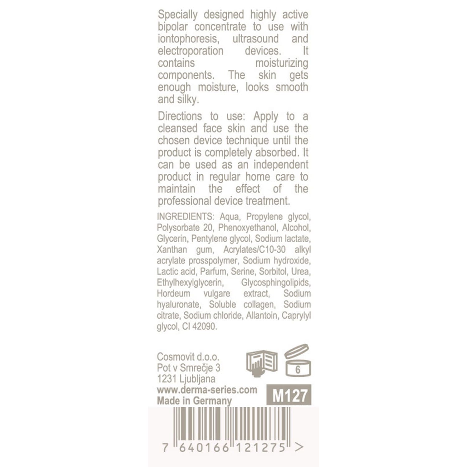 Highly active bipolar concentrate is specially designed to be used in a device-based cosmetology by professionals. The product can be used as a gel for iontophoresis, ultrasound, microcurrent and electroporation. This moisturizing serum for electrical modalities provides intense skin hydration and smoothes small wrinkles that appear due to skin dryness. The product is in an ionised form with a high bioavailability. It significantly improves the effect of physiotherapy.