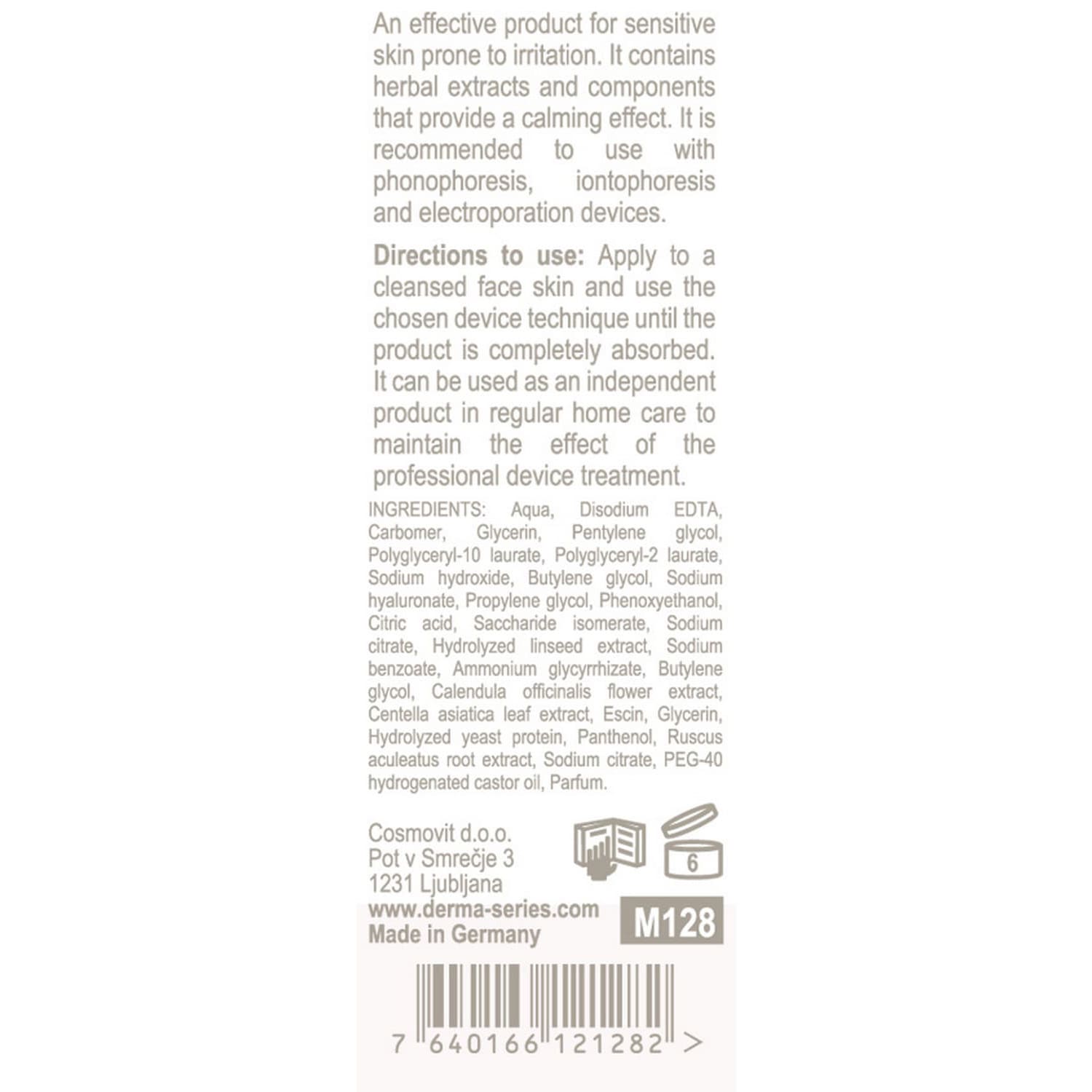 This serum for sensitive skin for professional skincare modalities contains liquorice root and horse chestnut extracts – active ingredients that make capillary walls firmer and stimulate injury recovery. Panthenol and bisabolol produce calming, hydrating effects and decrease inflammation manifestations.