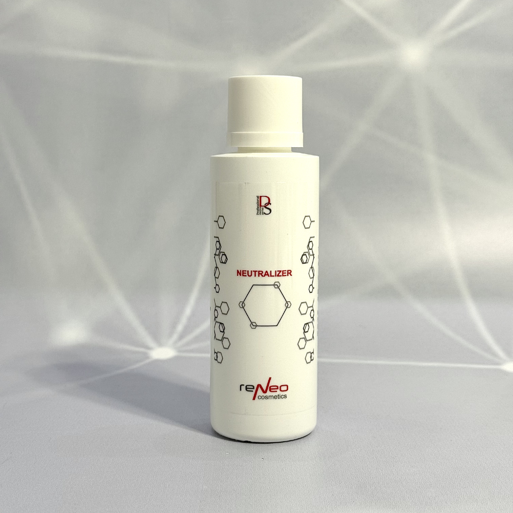 Verwijder overtollig zuur met vochtige sponsjes. Gebruik daarna de neutralisator om de werking van de zuren volledig te stoppen op het huidoppervlak. Bij een gevoelige huid wordt geneutraliseerd zonder contact met water.