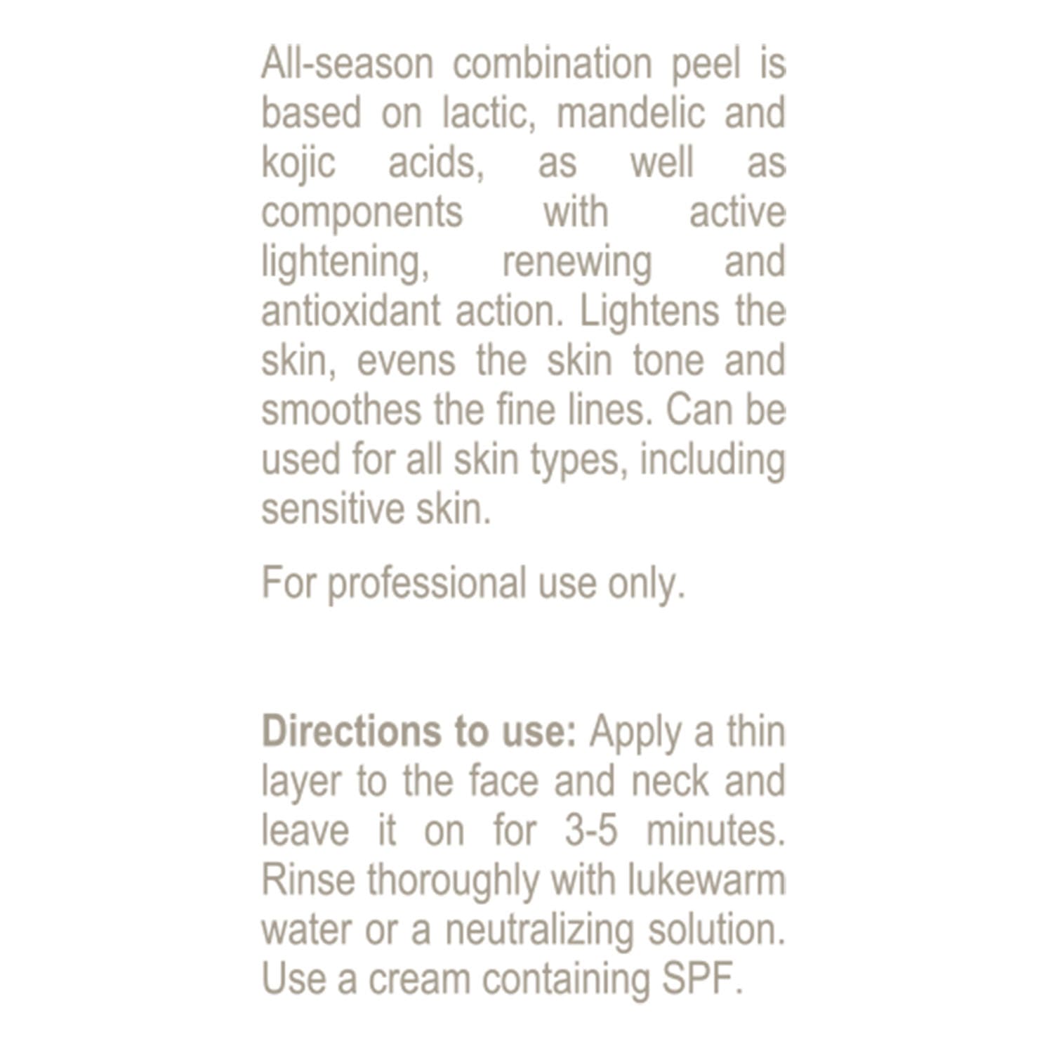 It is recommended to use as the second step in PEEL-EXPERT procedure – after the treatment with peeling PEEL-EXPERT LIGHT.