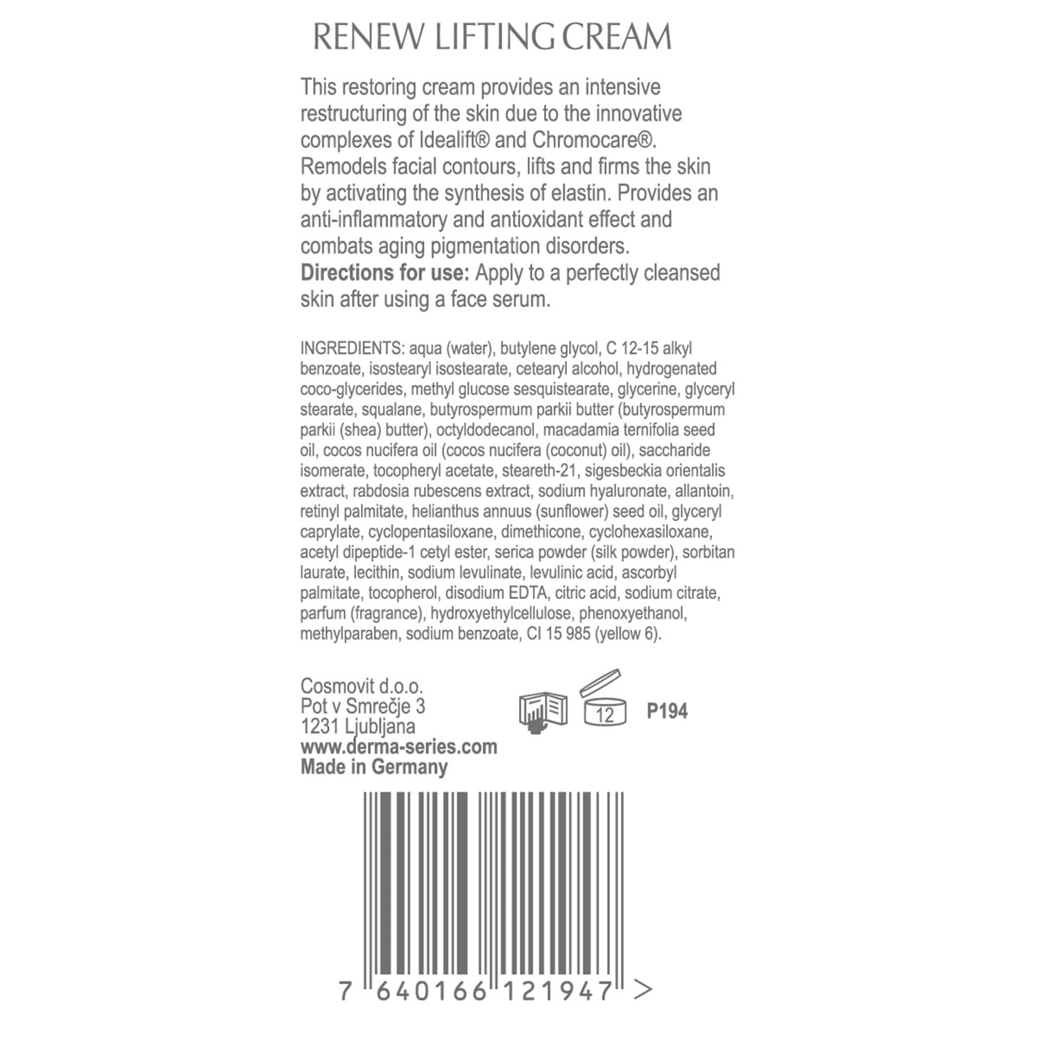 IDEALIFT® is an elastin-stimulating dipeptide linked to the lipid chain to increase bioavailability. It effectively combats skin sagging and gravitational ptosis by activating elastin synthesis in fibroblasts, strengthening the structure of connective tissue, and correcting the normal functioning of mature elastin through the synthesis of various molecules necessary for the correct architecture of elastic fibers. Under the influence of IDEALIFT the skin’s resistance to sagging is repeatedly increased. Skin sagging area is reduced by 24% after one month of application.