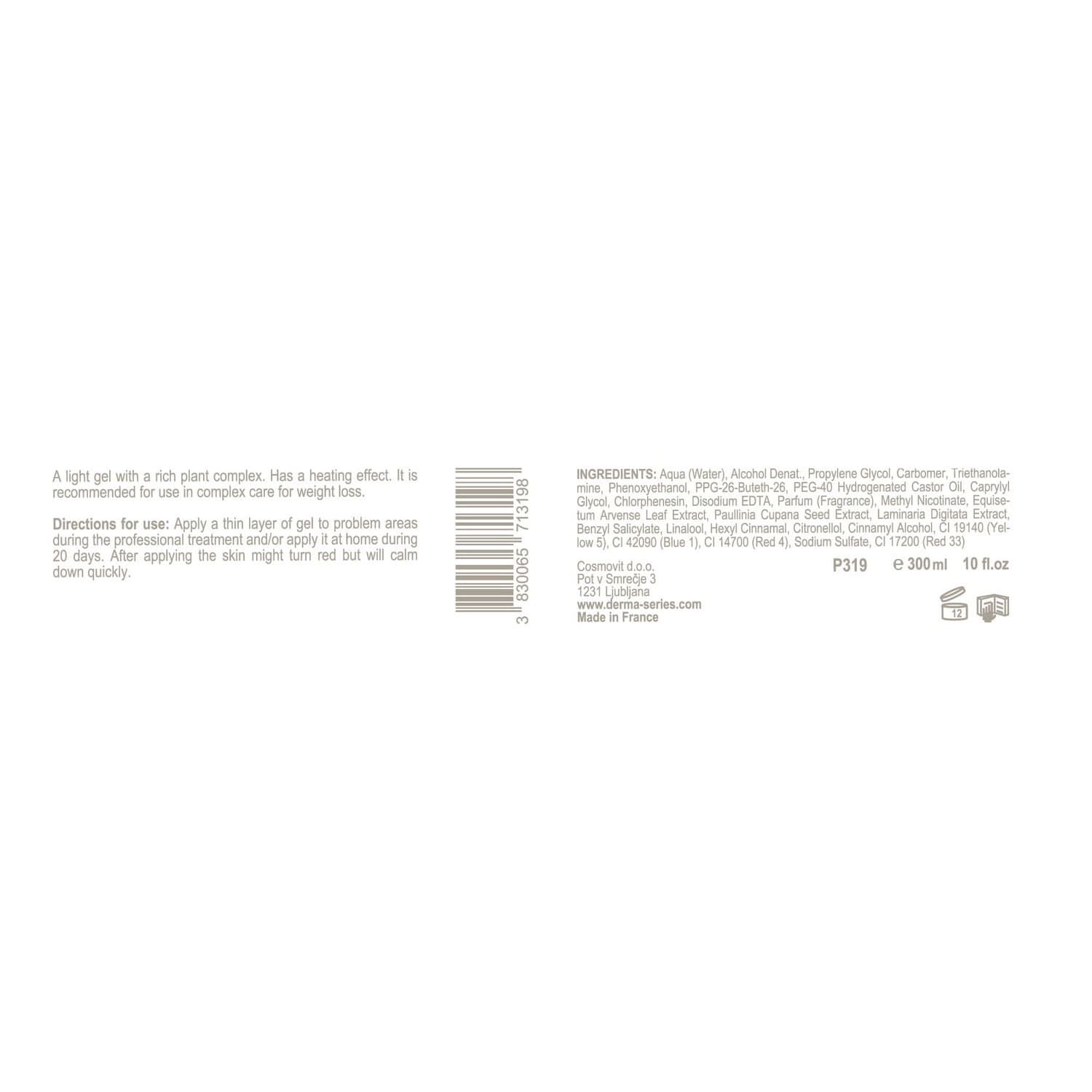 Locally apply the gel under a film for 7-10 minutes until the skin is actively warmed up. Then you can massage using massage products or make the exposure of P321 SLIMMING ALGAE MASK.