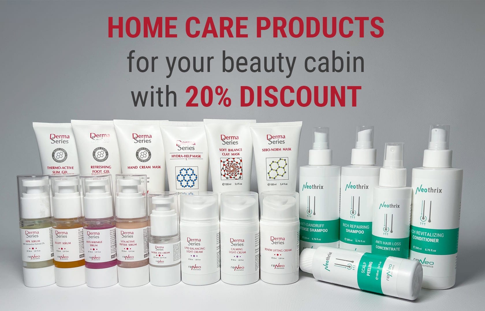 ReNeo Cosmetics offers your clients variety of treatments at reasonable price. And home care range is effective and affordable, complementing the effect of procedures. Amazing results guarantee customer loyalty for your clinic / salon / beauty cabin.